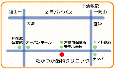 当クリニックへは葦高小学校、倉敷市保健所を目印にお越し下さい。オレンジの看板が見えたら当クリニックです。(お車もゆっくりと駐車していただけます。)