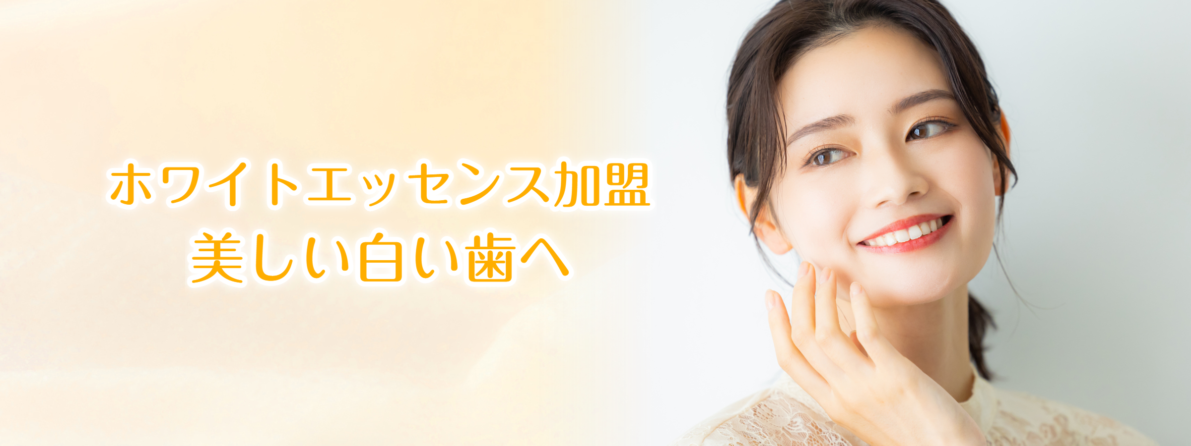 当院はデンタルエステサロン「ホワイトエッセンス」の加盟医院です。白く美しい歯を手に入れ、すてきな笑顔で毎日を過ごしていただきたい。その思いから、ホワイトニングを実施しています。